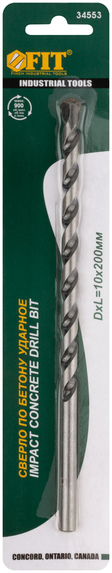 Сверло победитовое ударное, цилиндрический хвостовик (для бетона, кирпича) 10х200 мм, код 34553, производитель FIT