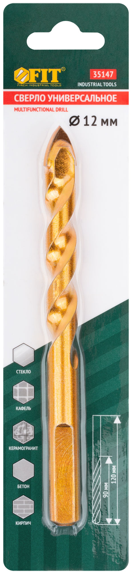 Сверло универсальное 12х120 мм, код 35147, производитель FIT