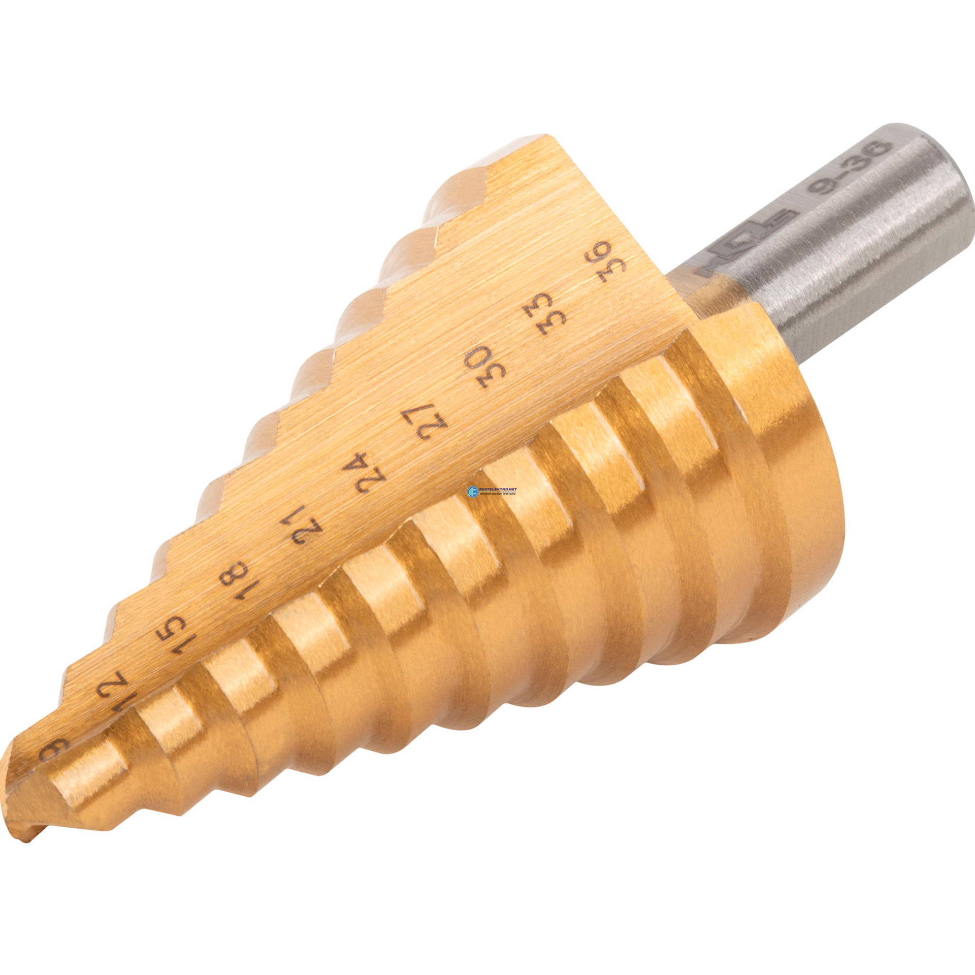 Сверло ступенчатое HSS по металлу, 10 ступеней 9-12-15-18-21-24-27-30-33-36 мм 36385М MOS