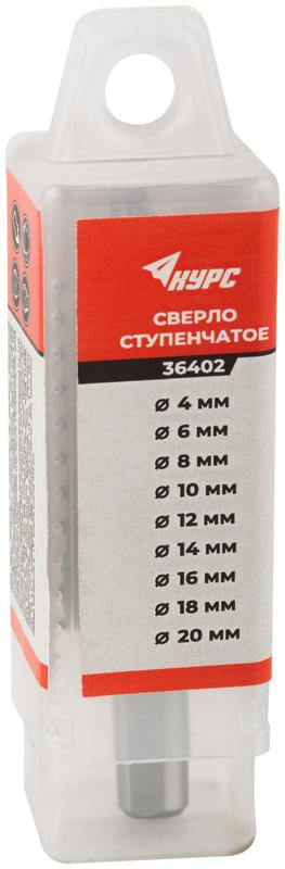 Сверло ступенчатое HSS по металлу, 9 ступеней, 4-20 мм, код 36402, производитель Курс