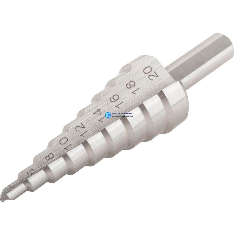 Сверло ступенчатое HSS по металлу, 9 ступеней, 4-20 мм 36402 Курс
