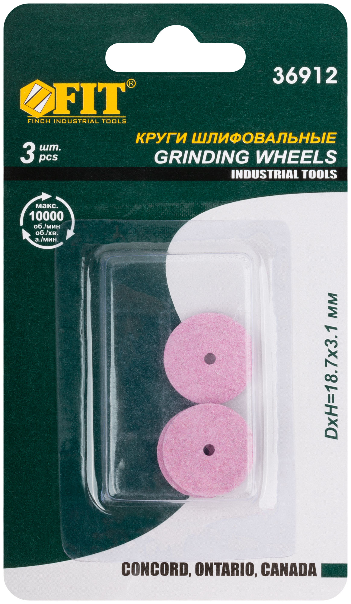 Круги алюминий-оксидные шлифовальные, набор 3 шт 36912 FIT