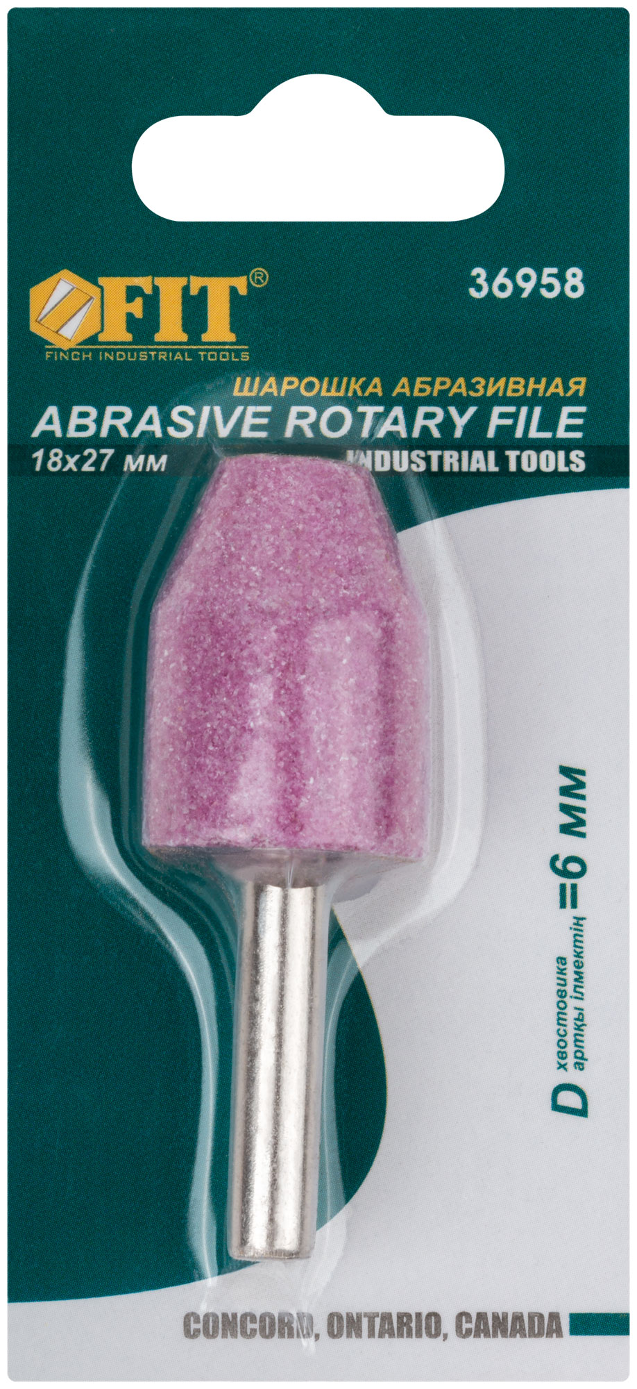 Шарошка абразивная (по металлу), хвостовик мм, цилиндр со скосом 18 х 27 мм, код 36958, производитель FIT