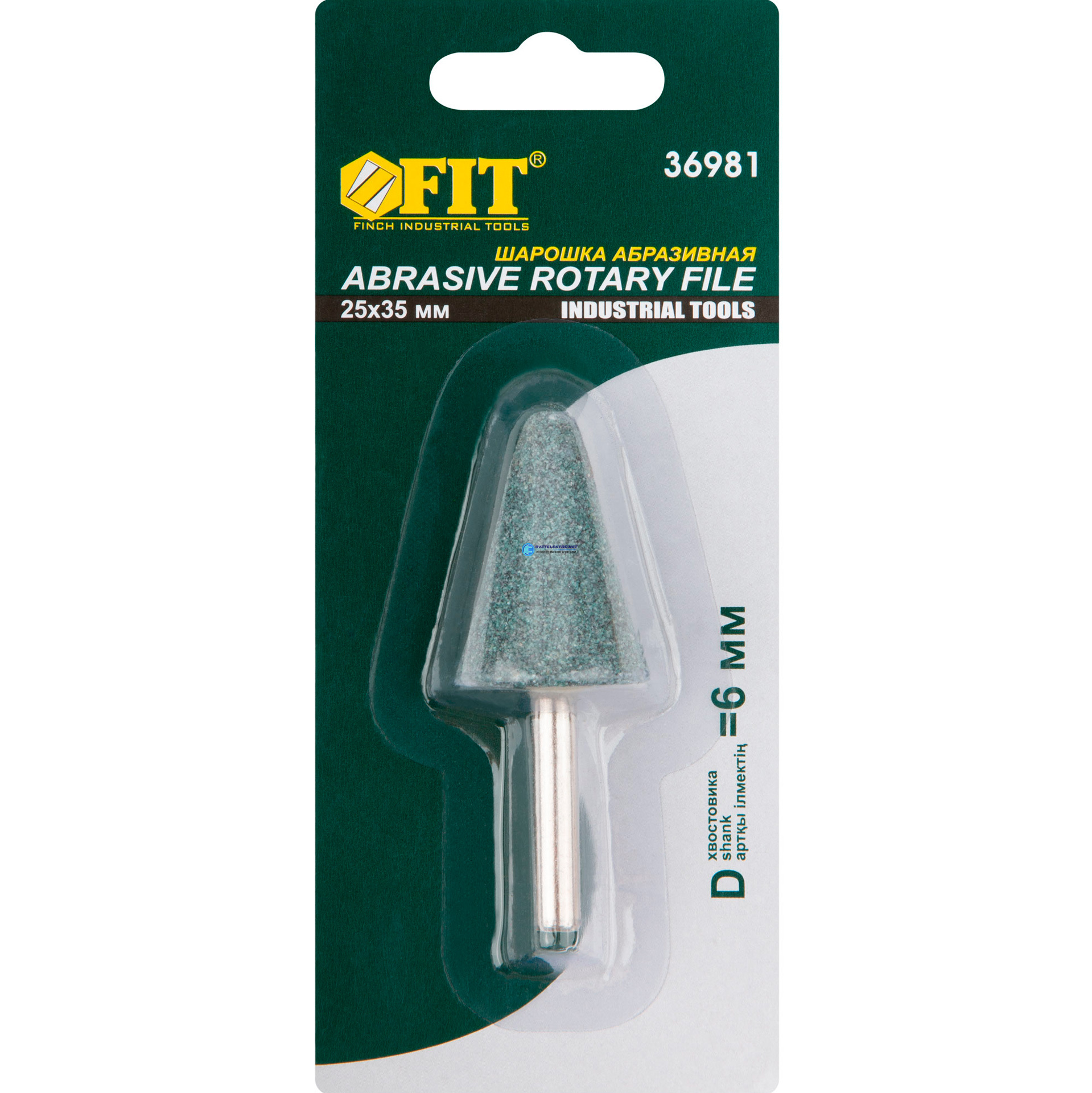 Шарошка абразивная (по камню, мрамору, кафелю), хвостовик мм, конус с закруглением 25 х 35 мм, код 36981, производитель FIT