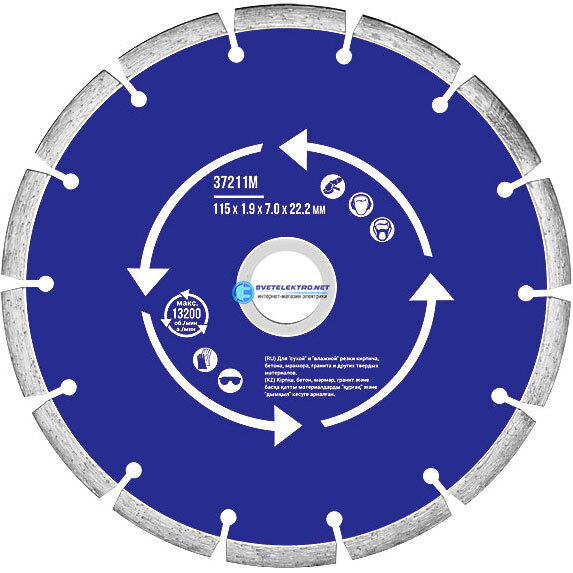 Диск отрезной алмазный сегментный (сухая и влажная резка) 115х1.9х7.0х22.2 мм, код 37211М, производитель MOS