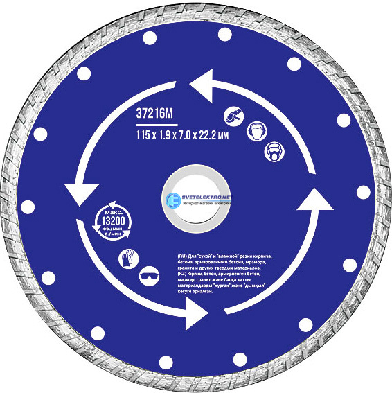 Диск отрезной алмазный ''турбо'' (сухая и влажная резка) 115х1.9х7.0х22.2 мм, код 37216М, производитель MOS