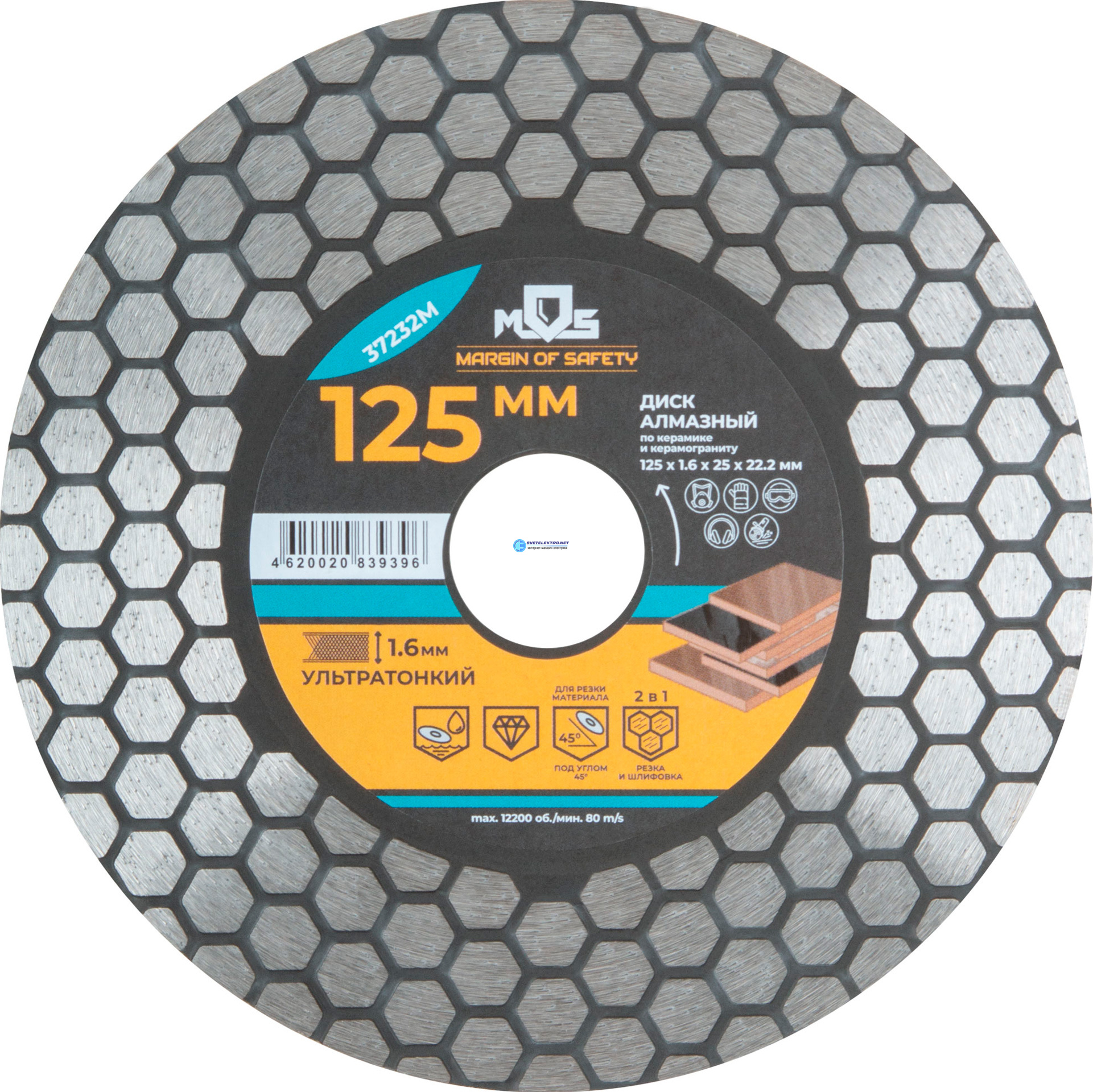 Диск отрезной алмазный по керамике и керамограниту 125 х 1.6 х 25 х 22.2 мм, код 37232М, производитель MOS