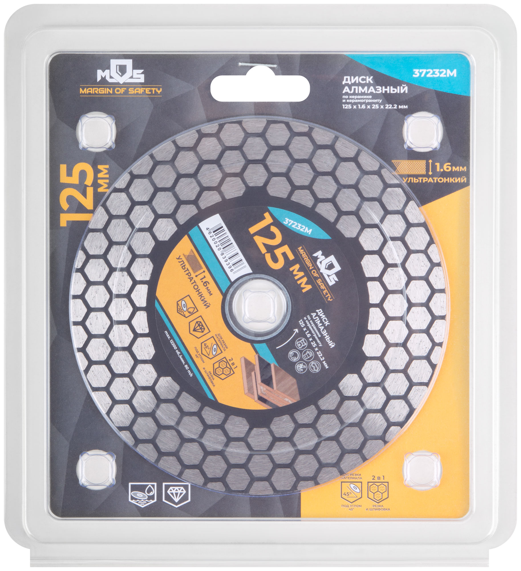 Диск отрезной алмазный по керамике и керамограниту 125 х 1.6 х 25 х 22.2 мм 37232М MOS