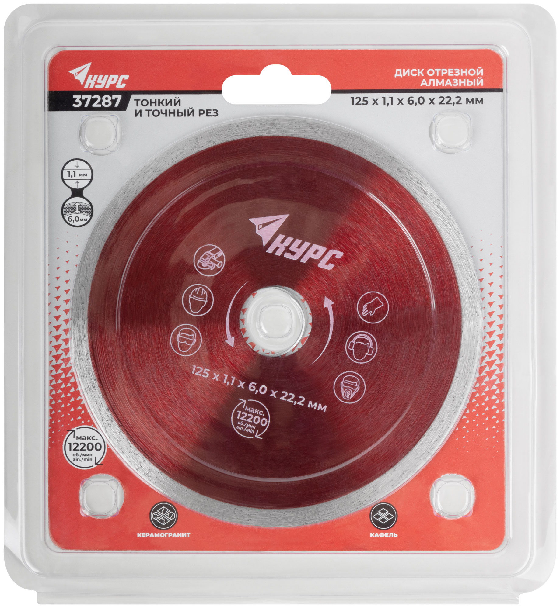 Диск отрезной алмазный сплошной, тонкий (влажная резка), для кафеля и керамогранита, 125х1,1х6,0х22,2 мм, код 37287, производитель FIT