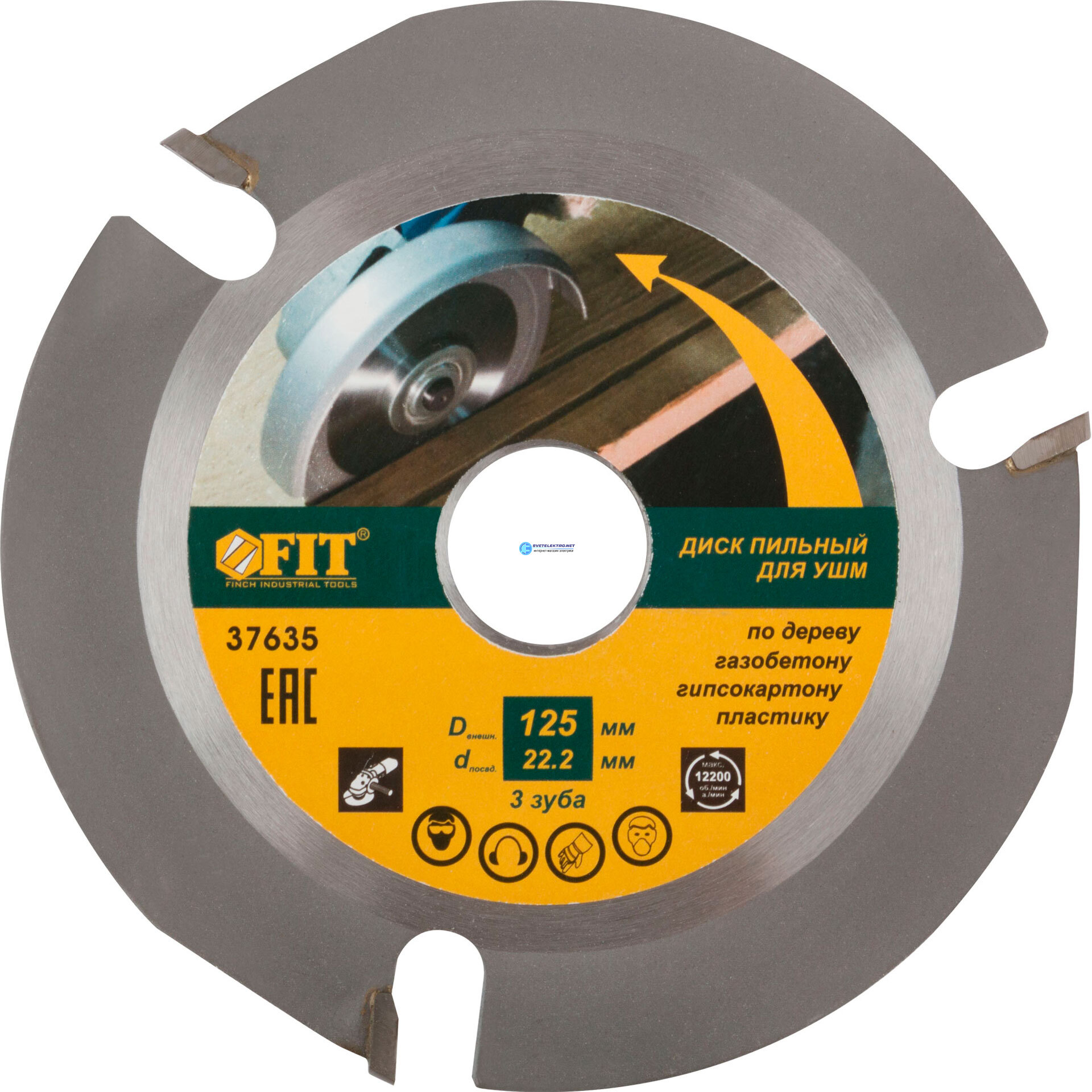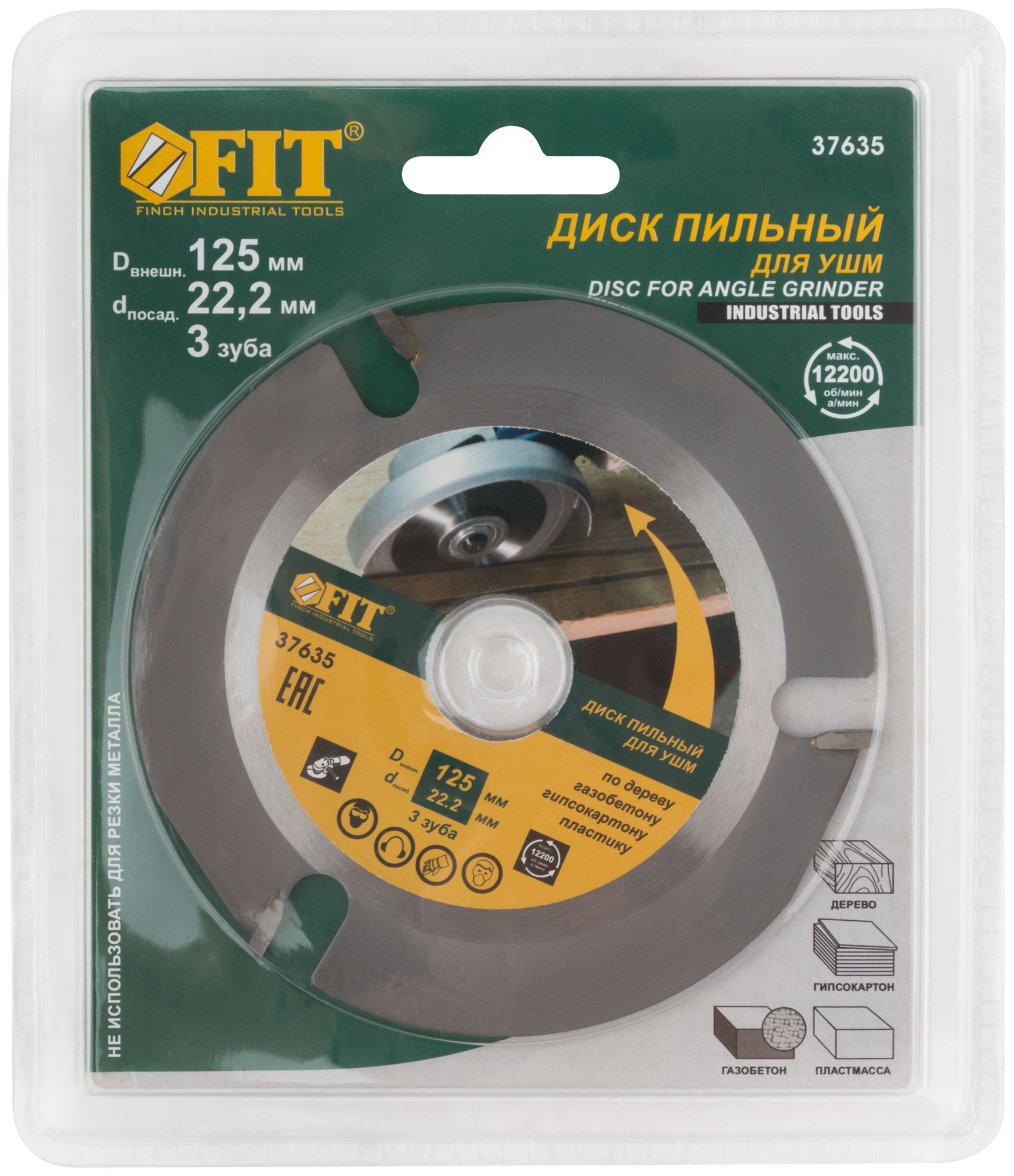 Диск пильный по дереву, посадочный диаметр 22.2 мм, зуба с карбидными вставками, 125 мм, код 37635, производитель FIT