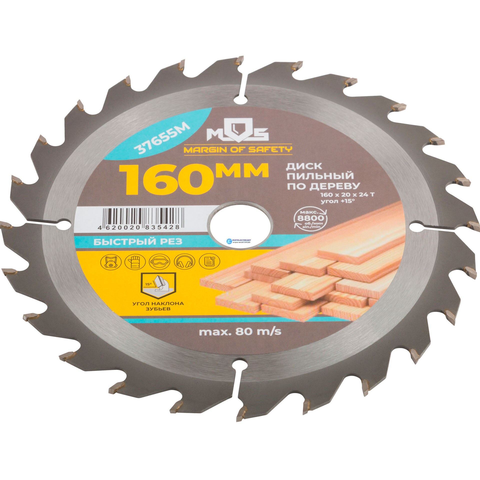 Диск пильный для циркулярных пил по дереву 160 х 20 х 24T + кольцо 20/16 мм, код 37655М, производитель MOS