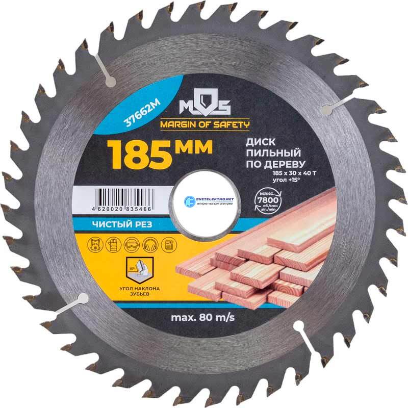 Диск пильный для циркулярных пил по дереву 185 х 30 х 40T + кольца и мм, код 37662М, производитель MOS