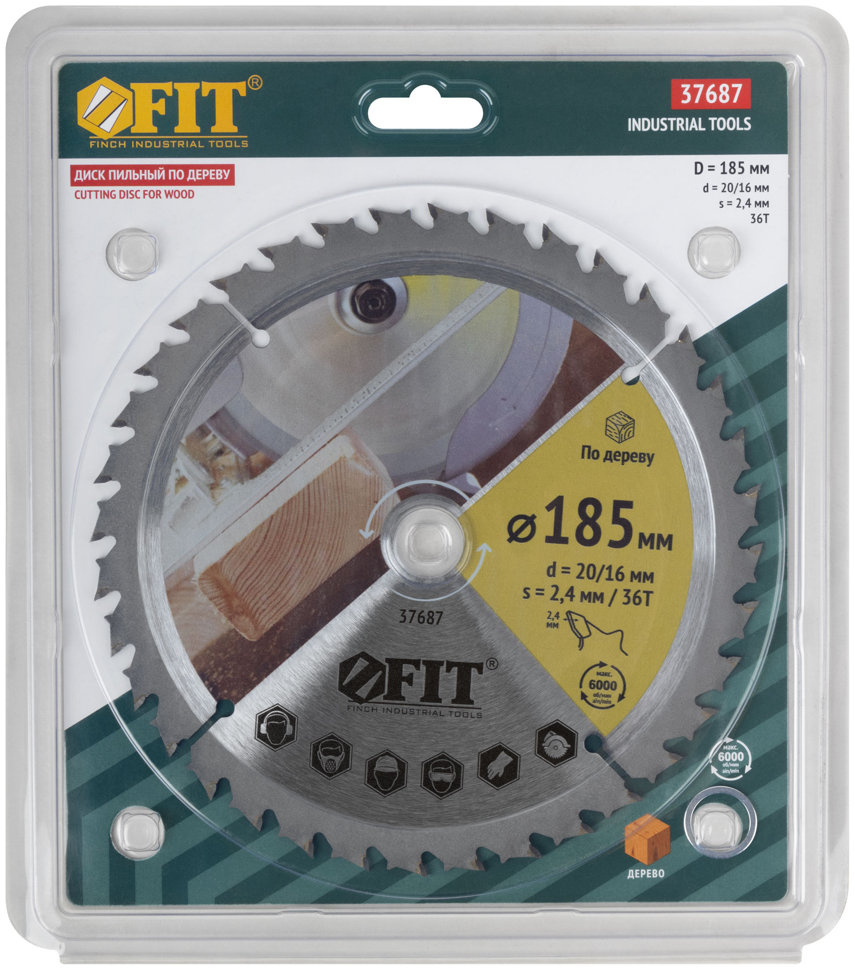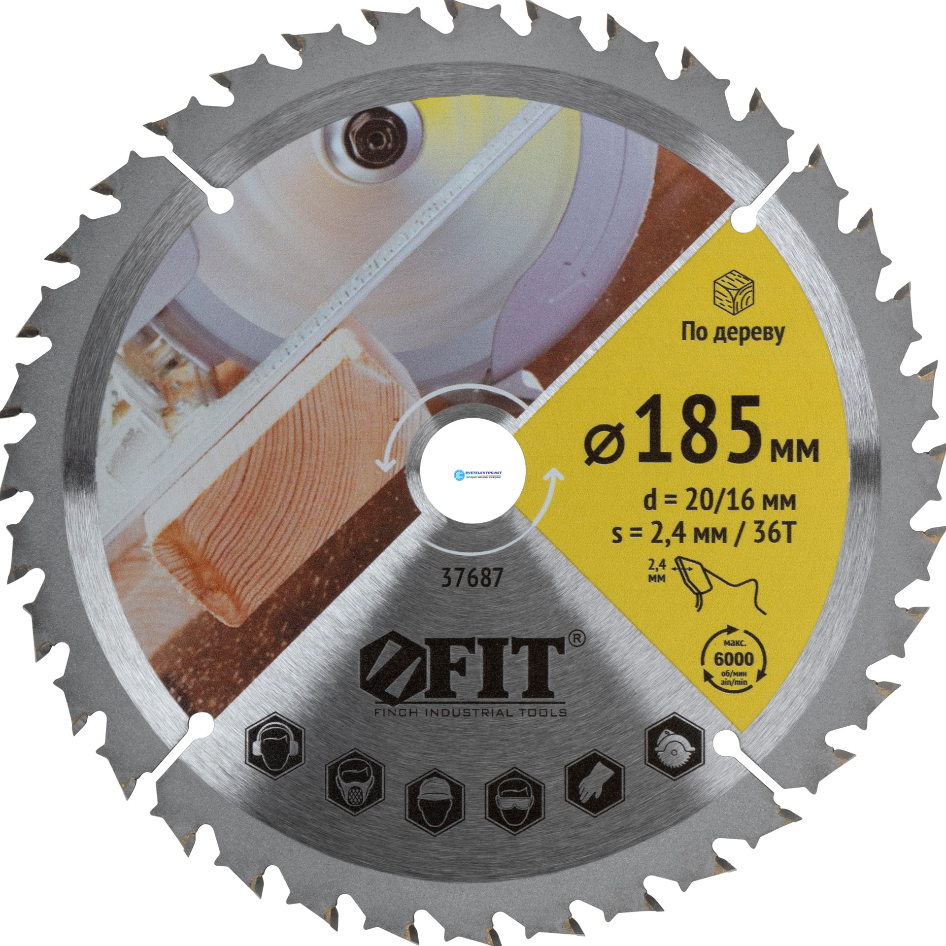 Диск пильный для циркулярных пил по дереву, спец. форма зуба 185 х 20/16 х 36Т, код 37687, производитель FIT