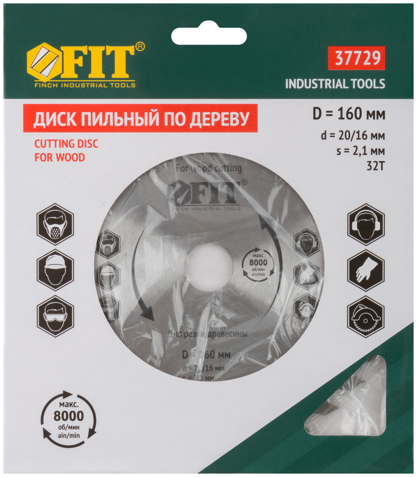 Диск пильный для циркулярных пил по дереву 160 х 20/16 х 32T 37729 FIT