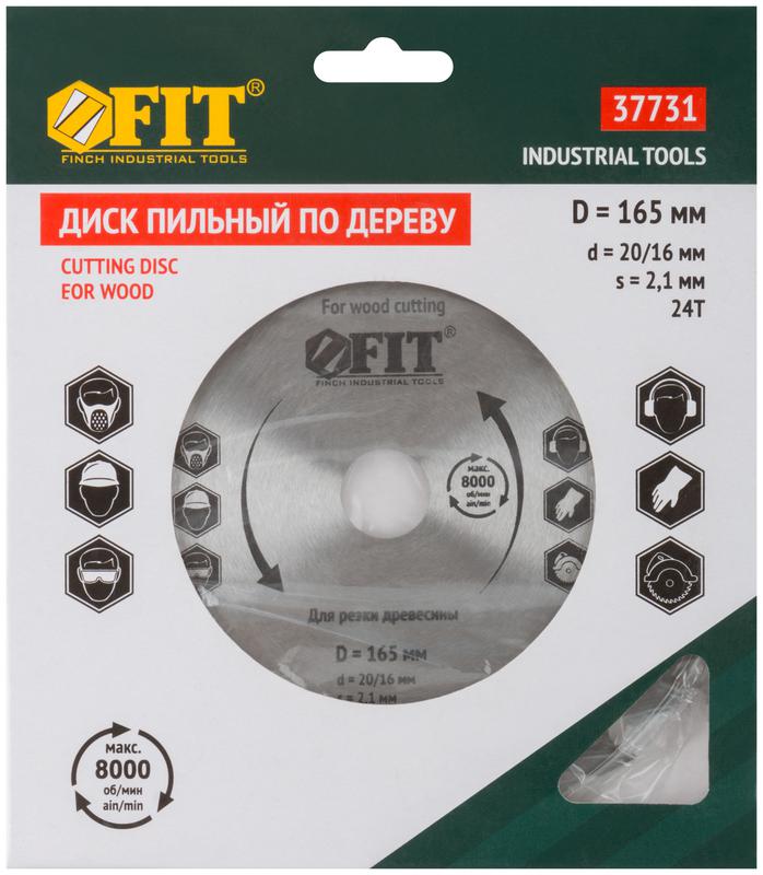 Диск пильный для циркулярных пил по дереву 165 х 20/16 х 24T 37731 FIT
