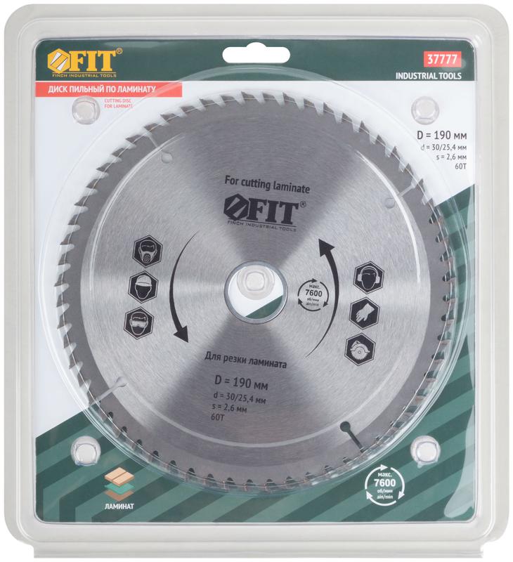 Диск пильный для циркулярных пил по ламинату 190 х 30/25.4 х 60T 37777 FIT