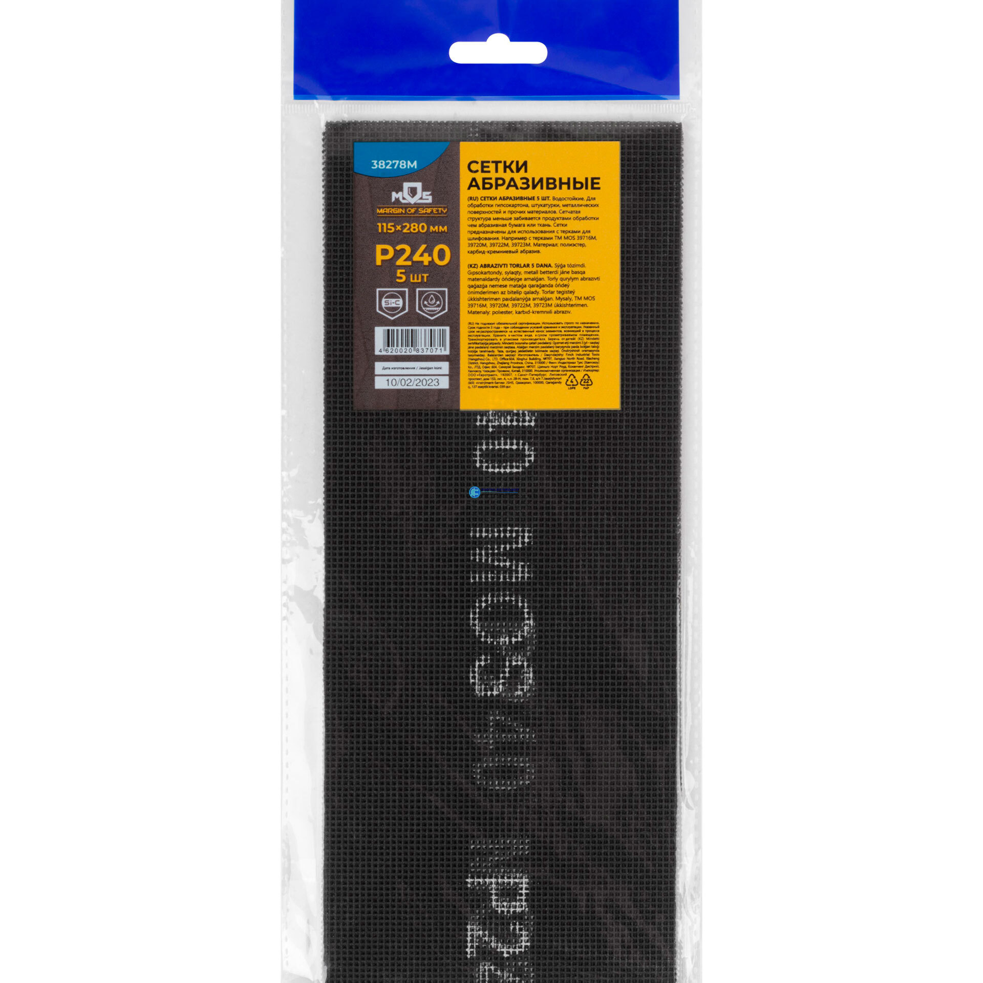 Сетки шлифовальные 115х280 мм, 5 шт., Р 240, код 38278М, производитель MOS