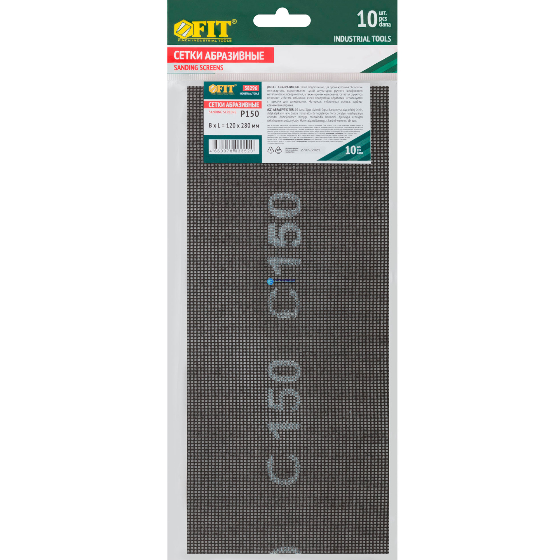 Сетки шлифовальные, нейлоновая основа, 120х280 мм, 10 шт Р 150, код 38296, производитель FIT