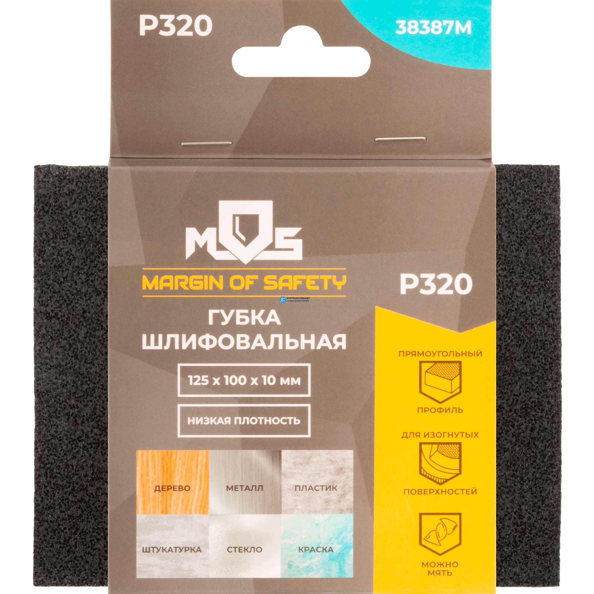 Губка шлифовальная алюминий-оксидная, 125х100х10 мм, Р 320, код 38387М, производитель MOS