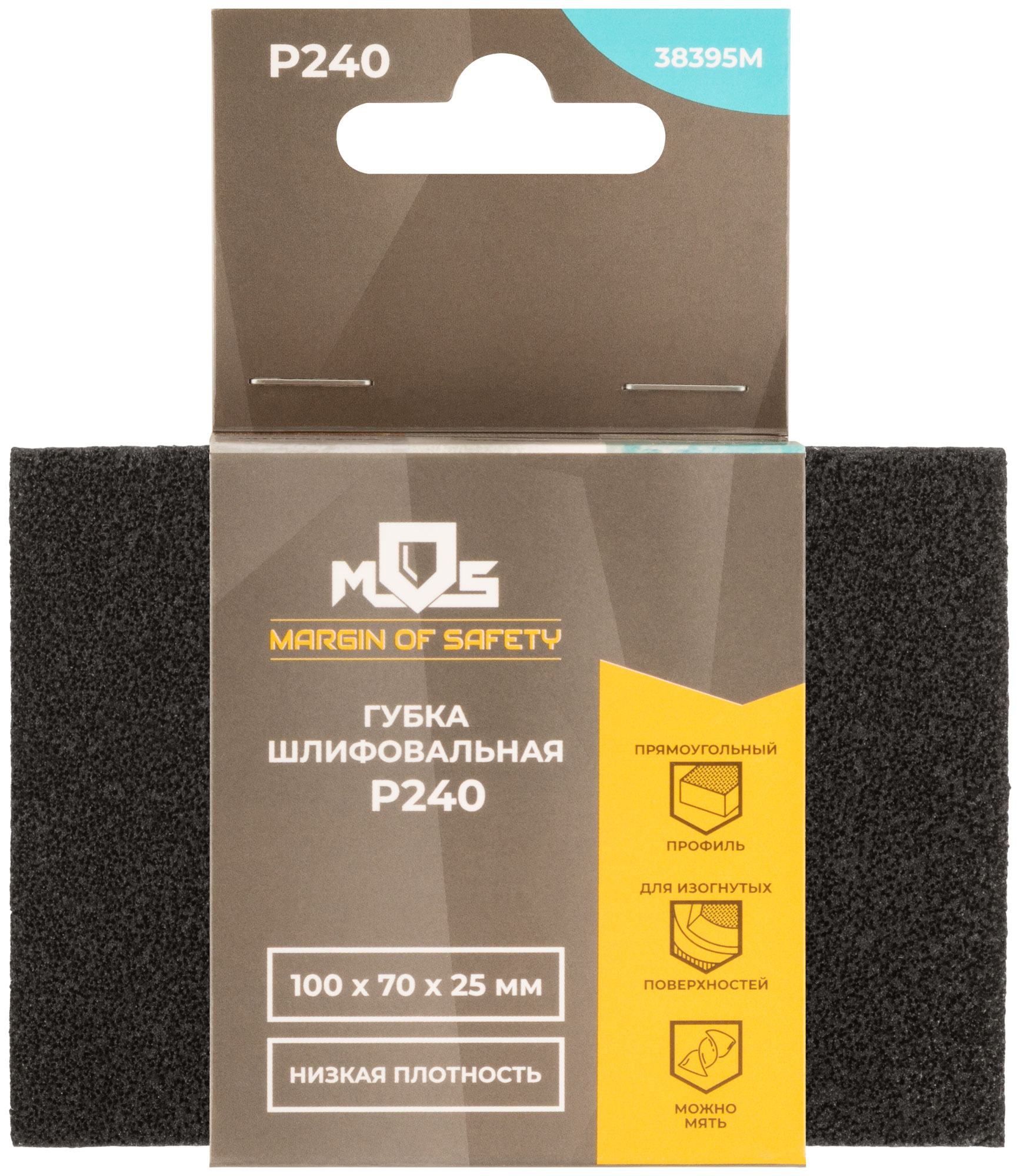 Губка шлифовальная алюминий-оксидная, 100х70х25 мм, Р 240, код 38395М, производитель MOS