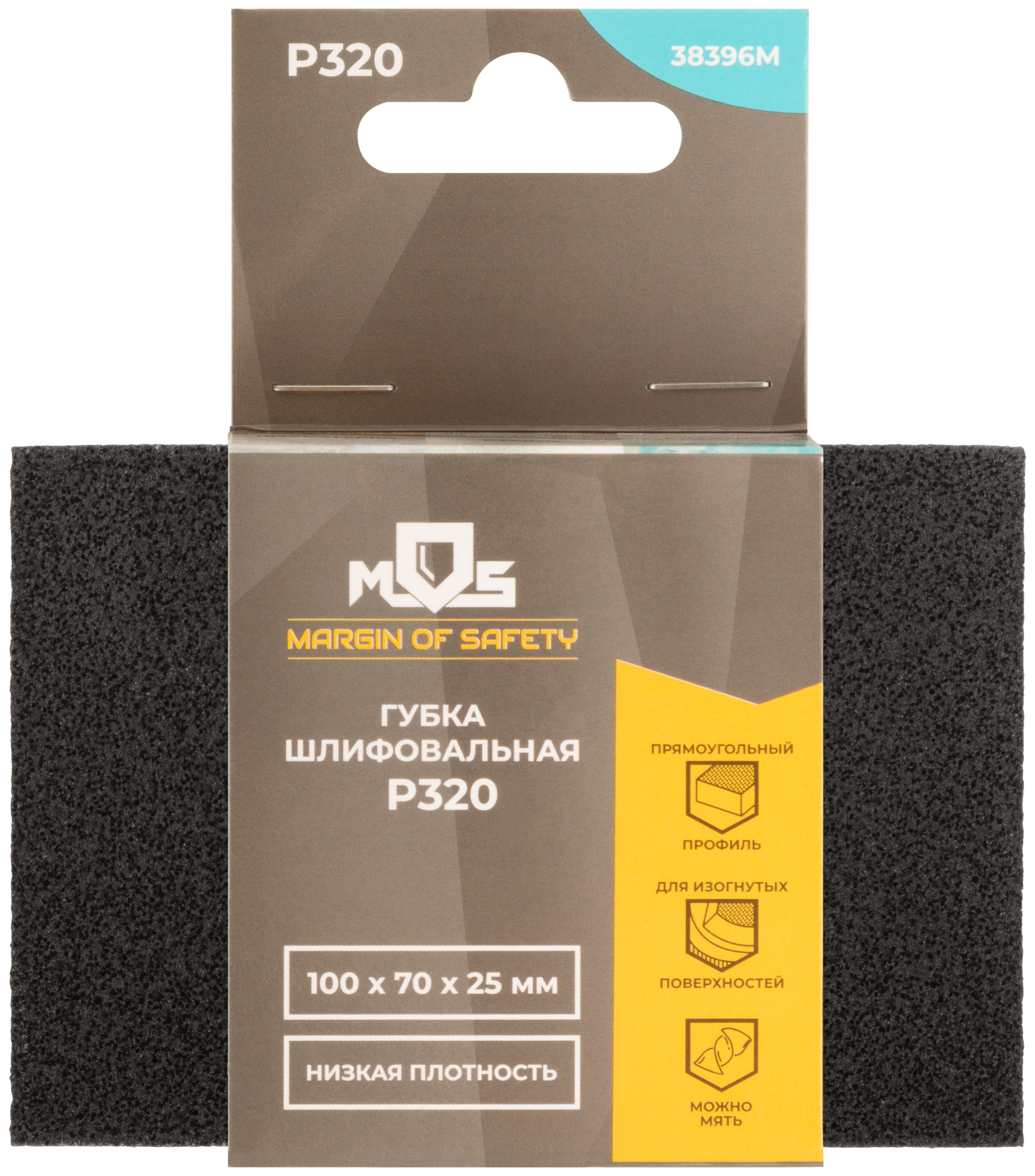 Губка шлифовальная алюминий-оксидная, 100х70х25 мм, Р 320, код 38396М, производитель MOS