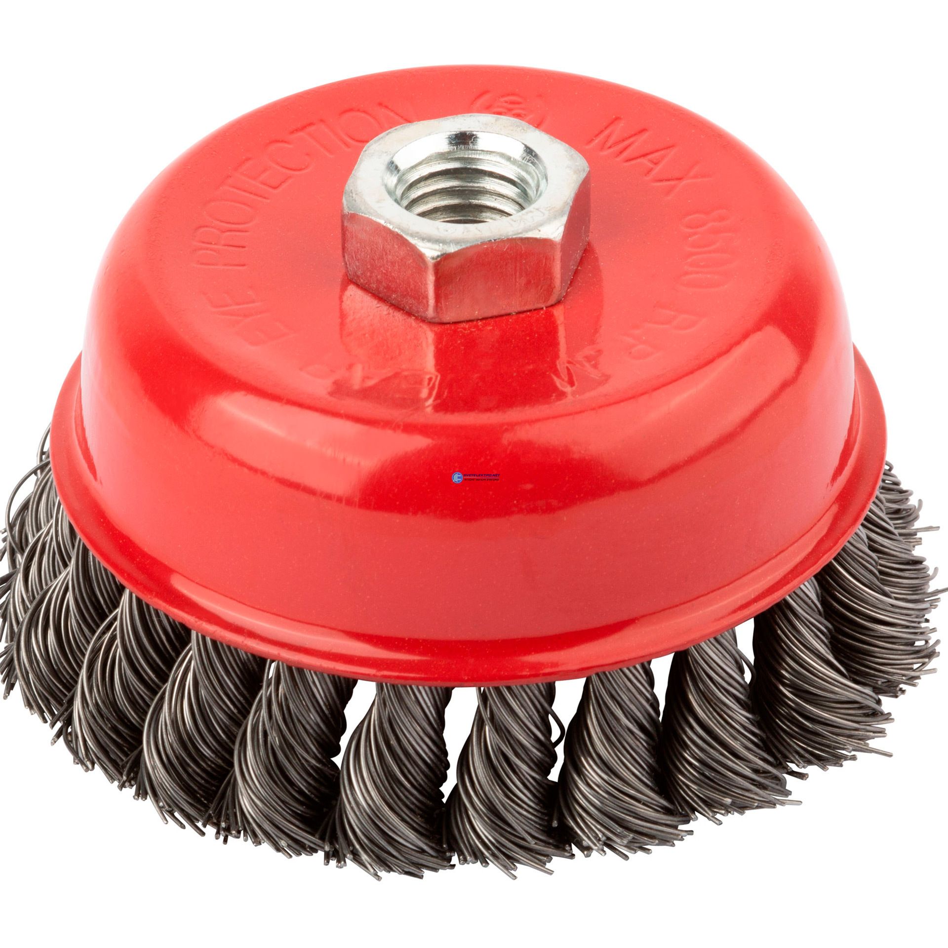 | Преимущества: | наиболее эффективна при обработке поверхностей с большой площадью|витая проволока толщиной 0,5 мм обеспечивает высокую скорость зачистки|порошковое покрытие корпуса и лаутнированное покрытие проволоки предотвращают коррозию|гайка с резьбой М14 обеспечивает прочную фиксацию: |