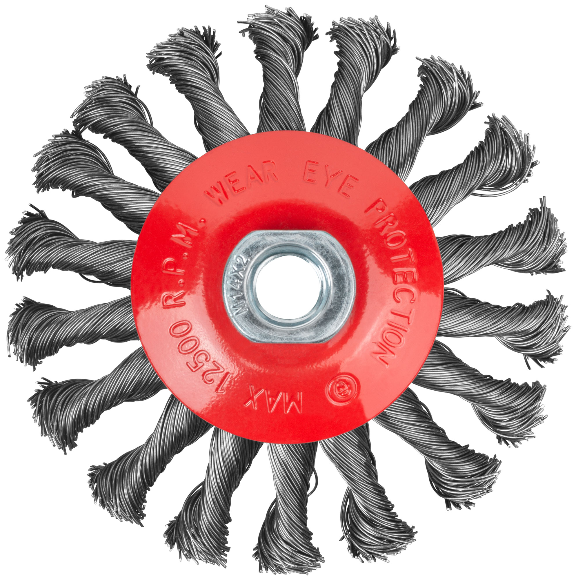 Кордщетка-колесо с наклоном, гайка М14, стальная витая проволока мм, код 39115, производитель FIT