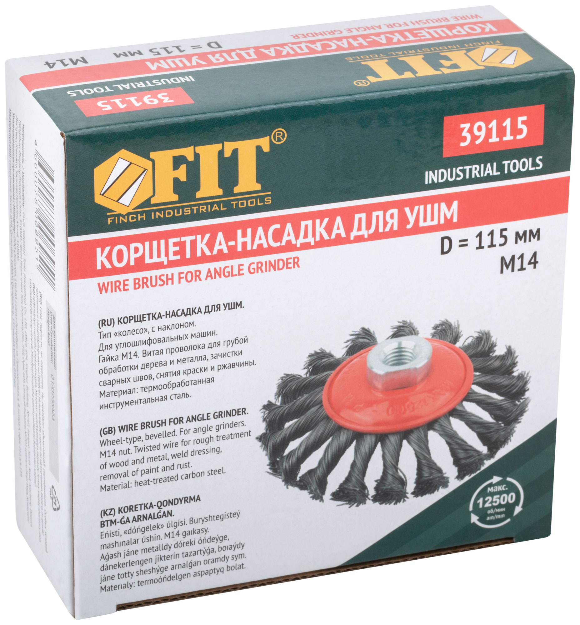 Кордщетка-колесо с наклоном, гайка М14, стальная витая проволока 115 мм 39115 FIT