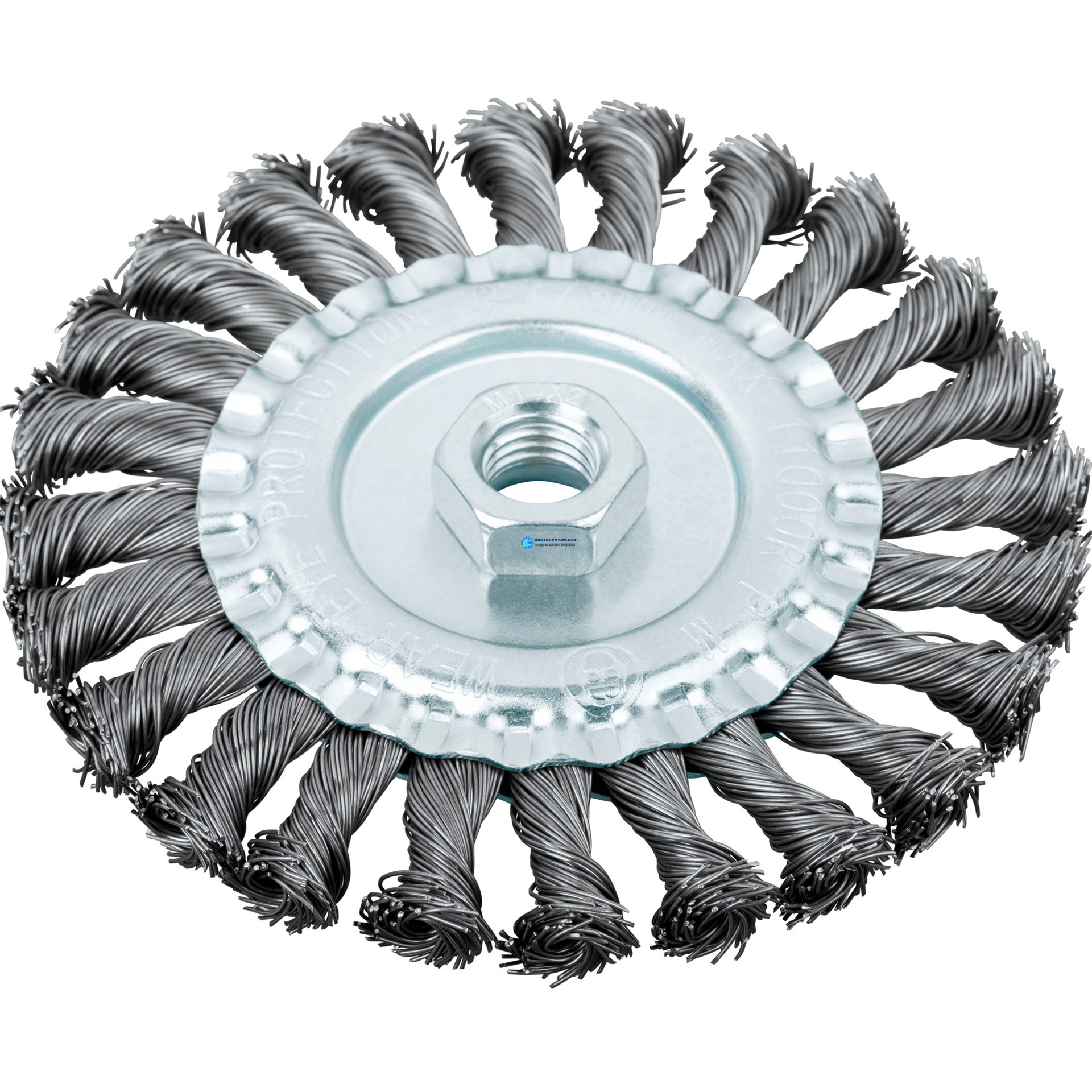 Кордщетка-колесо, гайка М14стальная, витая проволока 125 мм, код 39123, производитель FIT