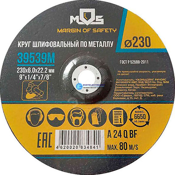Круг зачистной по металлу 230х6.0 мм, код 39539М, производитель MOS