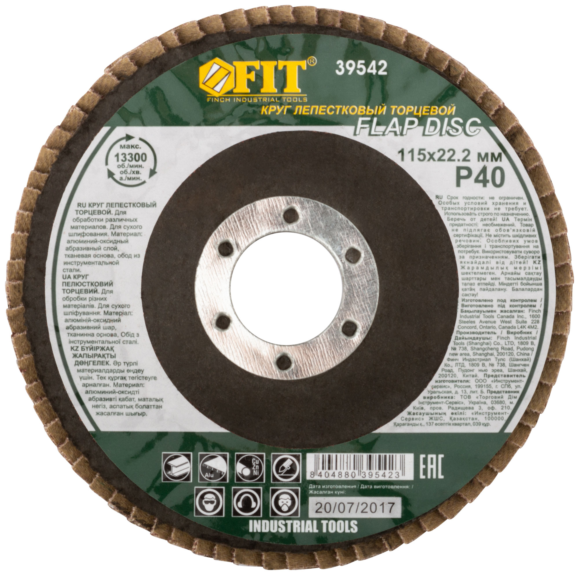 Круг лепестковый торцевой, 115 мм Р 40, код 39542, производитель FIT