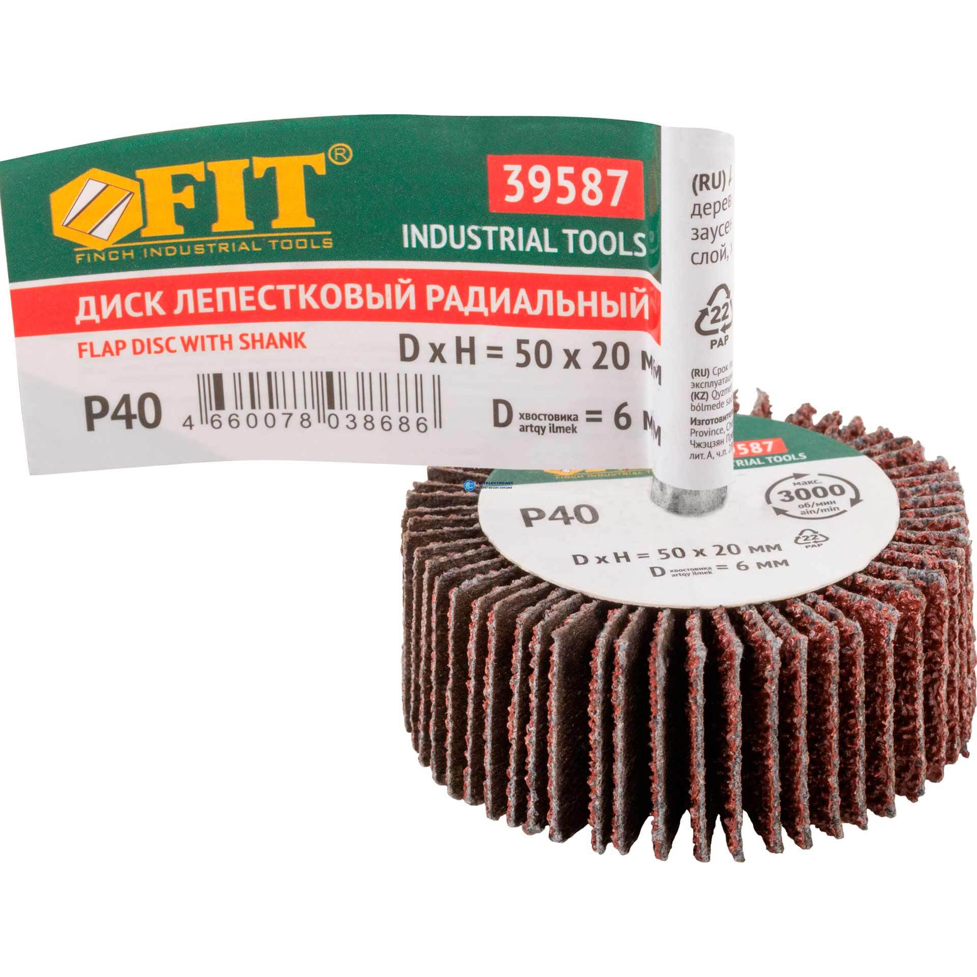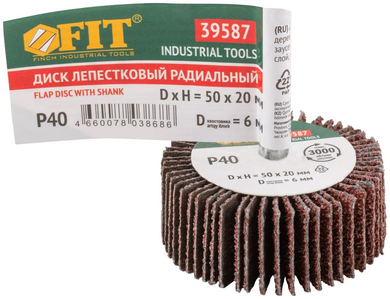 Диск лепестковый для дрели радиальный 50х20х6 мм Р 40, код 39587, производитель FIT