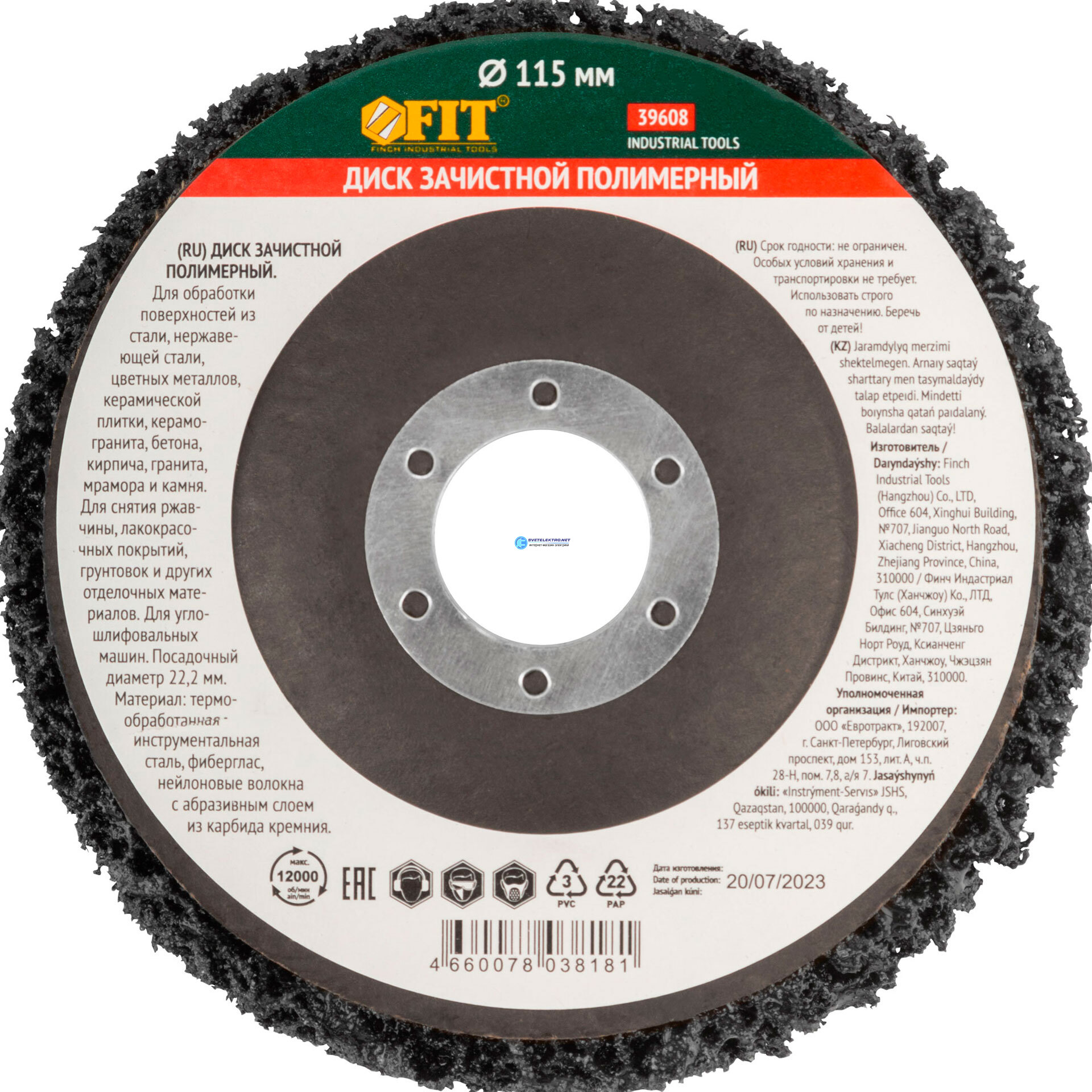 Диск зачистной полимерный, посадочный диаметр 22,2 мм, 115 мм, код 39608, производитель FIT