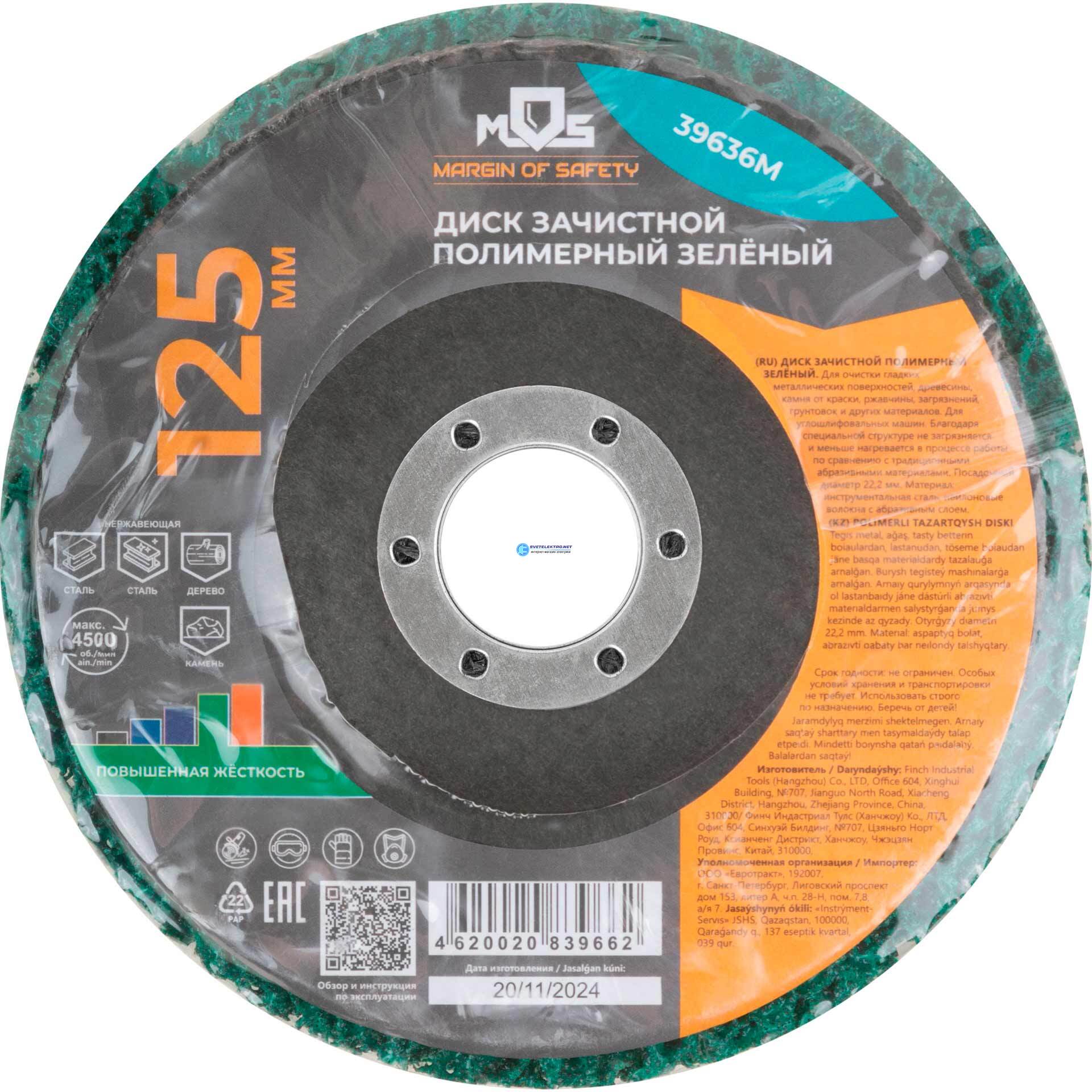 Диск зачистной полимерный 125 мм, зеленый, повышенной жесткости, код 39636М, производитель FIT