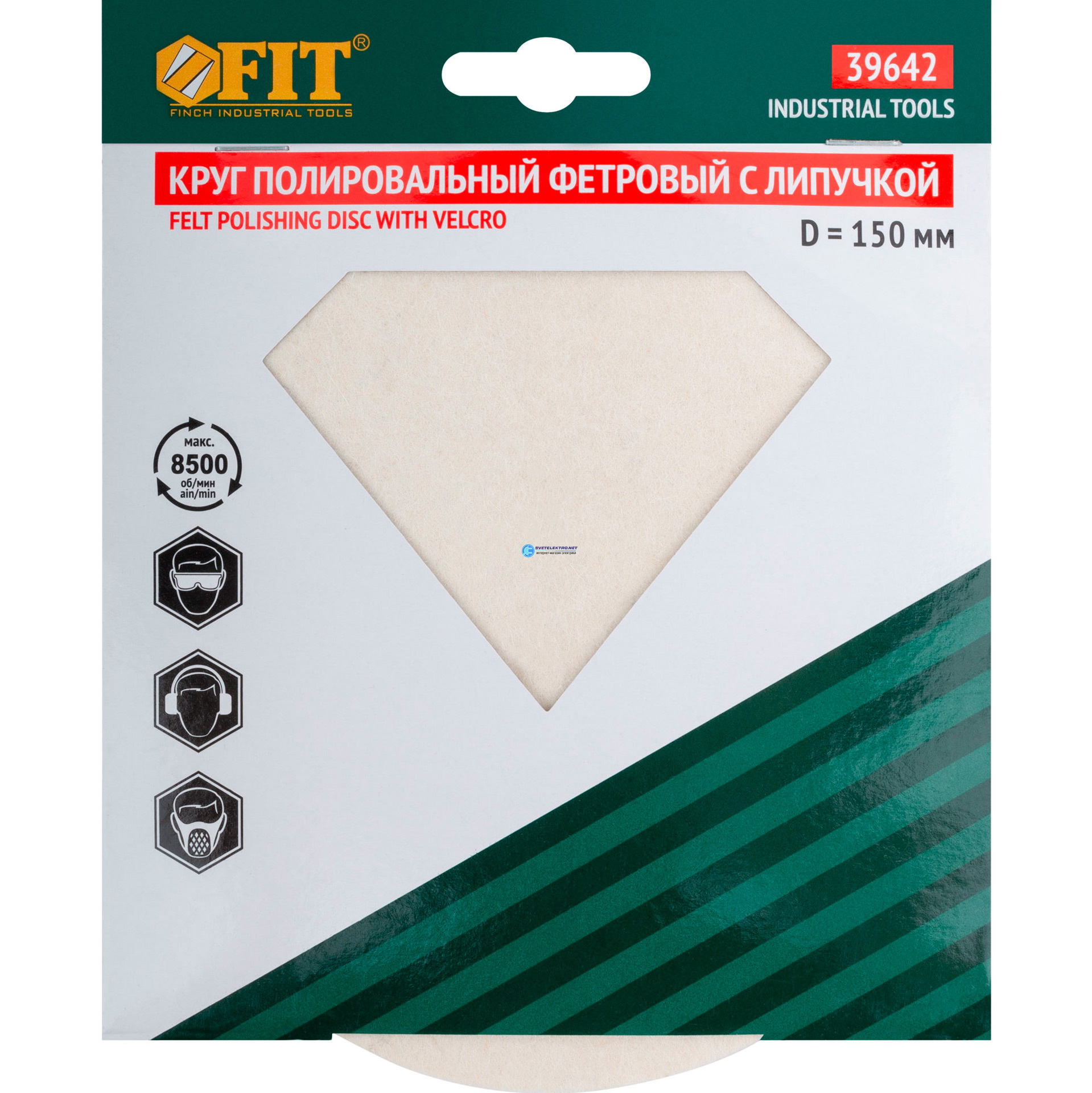 Круг полировальный фетровый (липучка) 150 мм, код 39642, производитель FIT