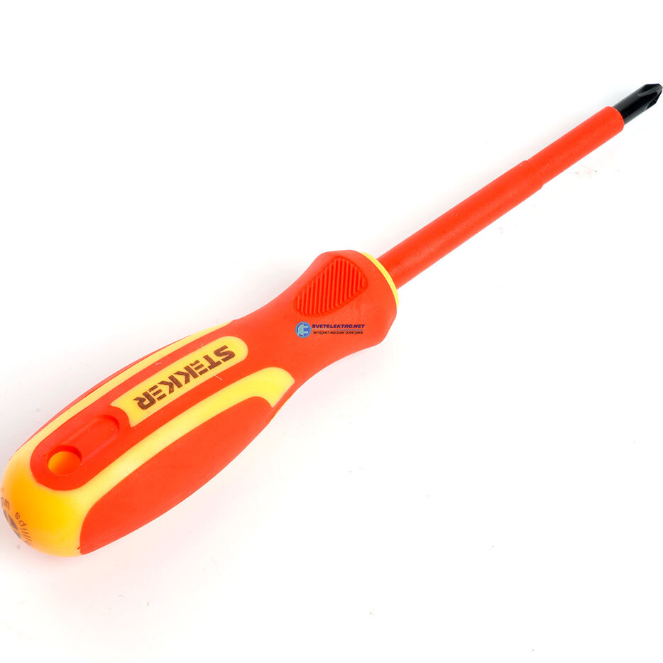 Отвертка крестовая диэлектрическая Ph2х100 1000В SDE-PH2-100, код 39766, производитель Stekker