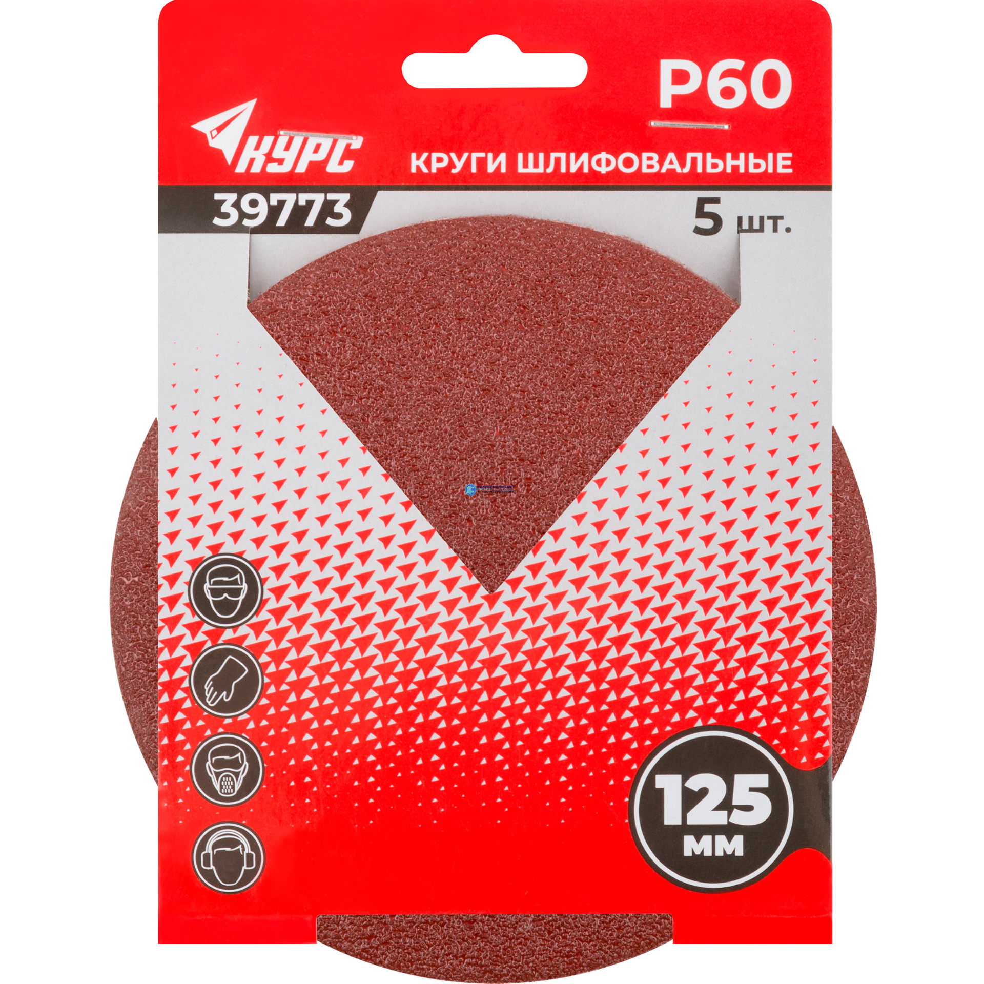 Куги шлифовальные сплошные (липучка), алюминий-оксидные, 125 мм, 5 шт 60, код 39773, производитель Курс