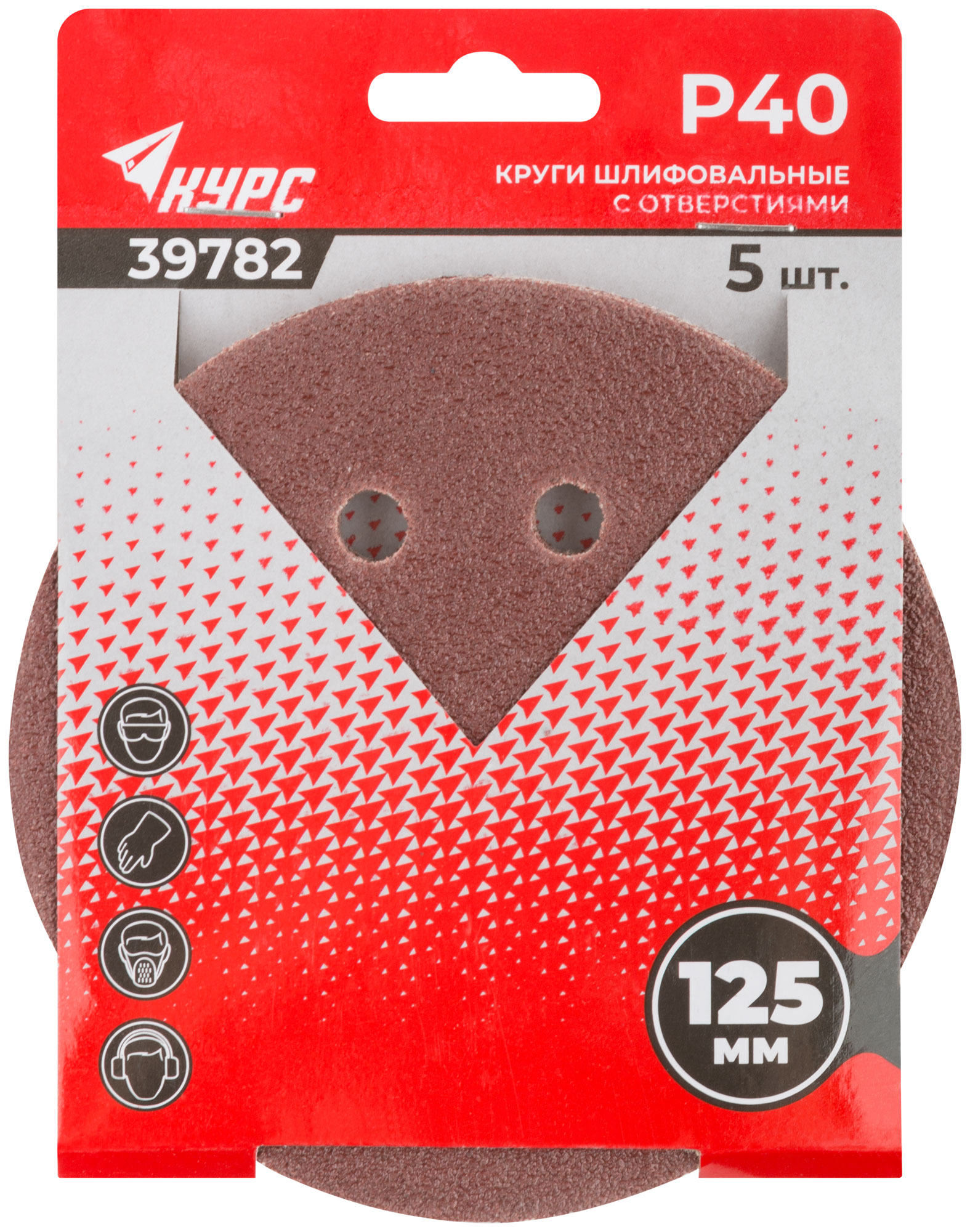 Круги шлифовальные с отверстиями (липучка), алюминий-оксидные, 125 мм, 5 шт Р 40 39782 Курс