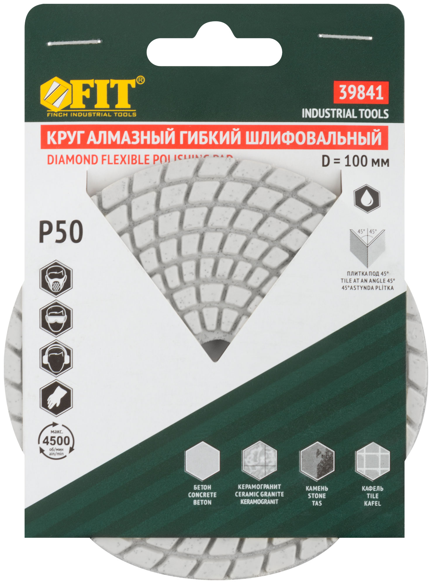 Круг алмазный гибкий шлифовальный АГШК (липучка), влажное шлифование, 100 мм, Р 50, код 39841, производитель FIT