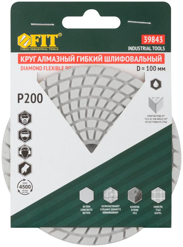 Круг алмазный гибкий шлифовальный АГШК (липучка), влажное шлифование, 100 мм, Р 200, код 39843, производитель FIT