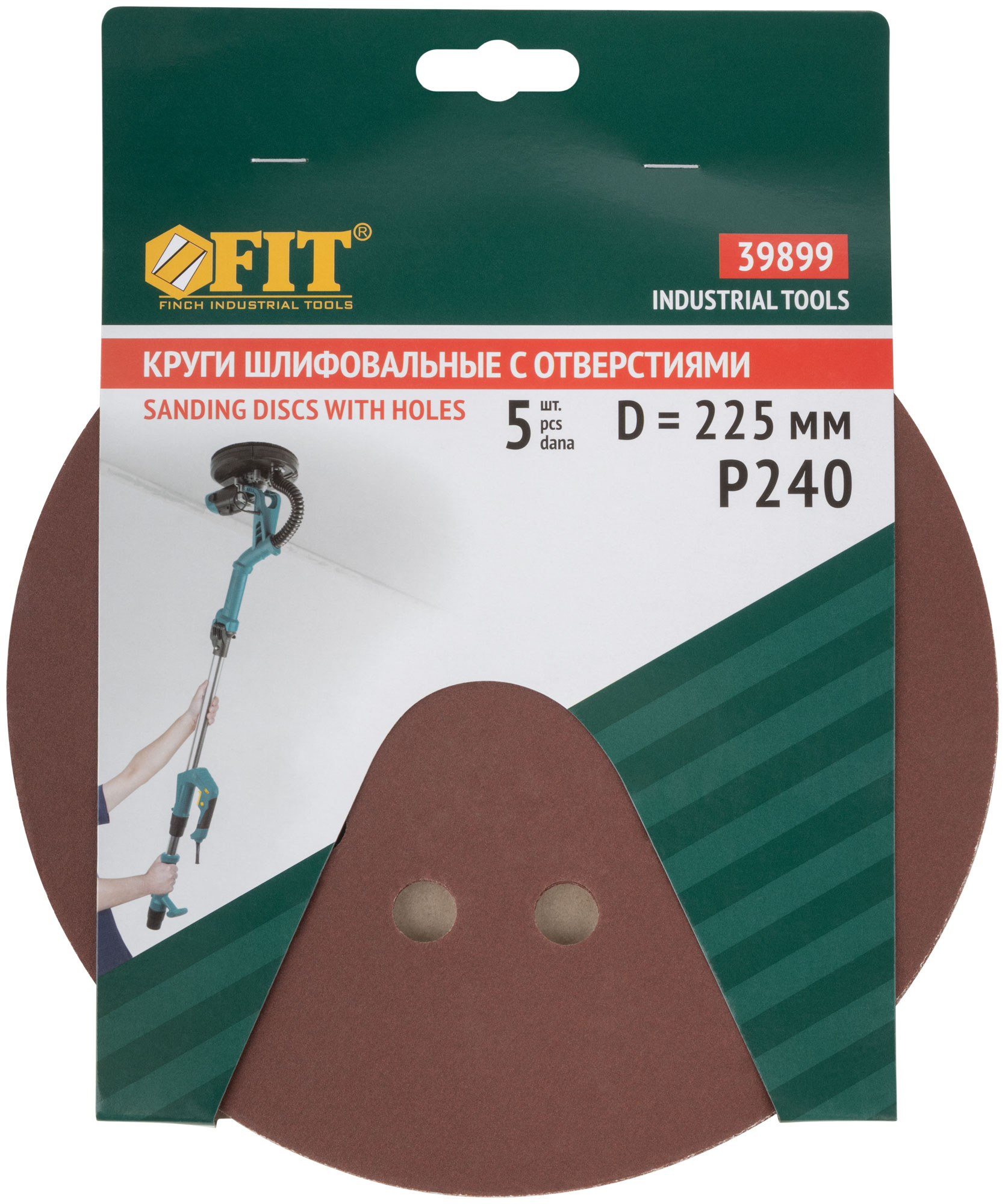 Круги шлифовальные с отверстиями (липучка), алюминий-оксидные, 225 мм, 5 шт. Р 240, код 39899, производитель FIT