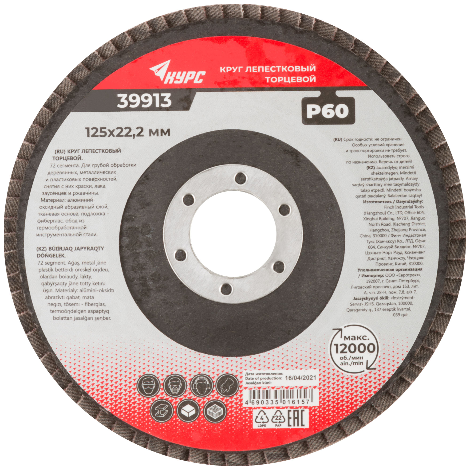 Круг лепестковый торцевой 125 мм P 60, код 39913, производитель Курс