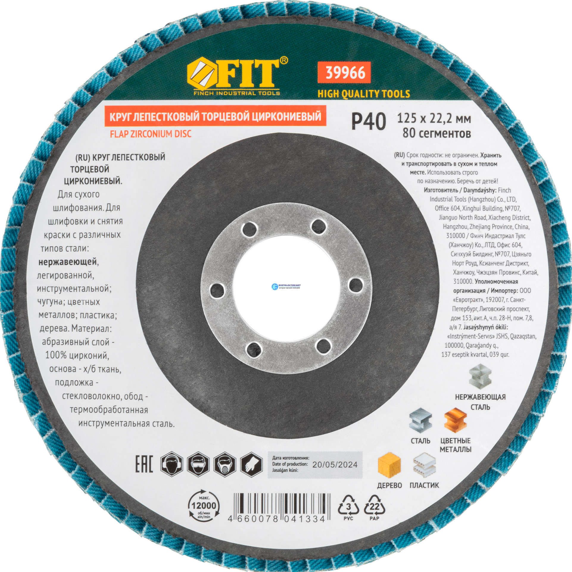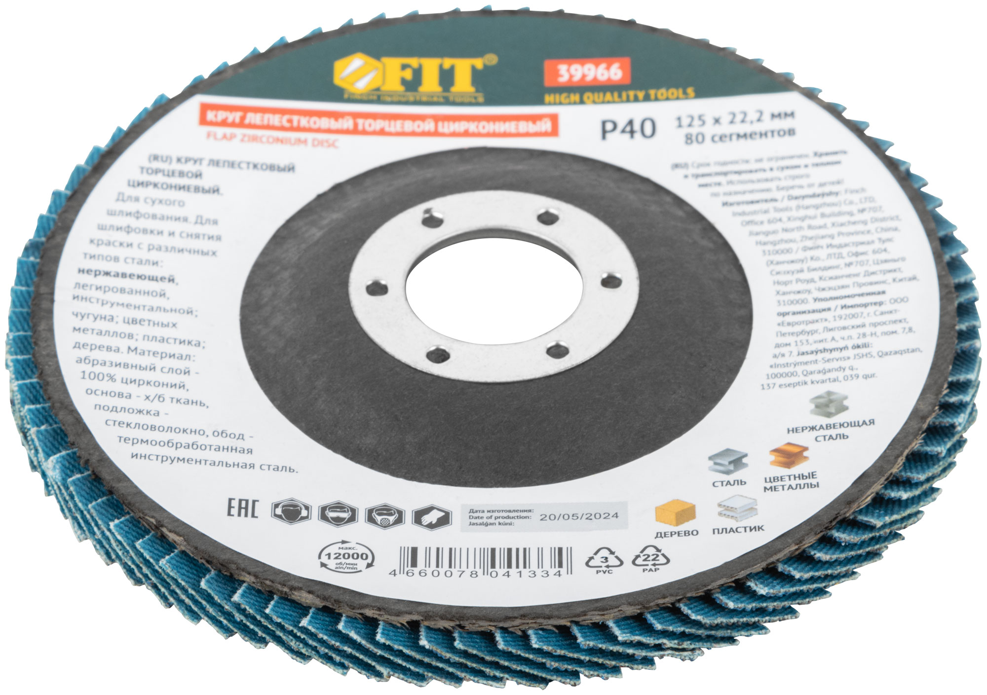 Круг лепестковый торцевой циркониевый, 125 мм Р 40, код 39966, производитель FIT