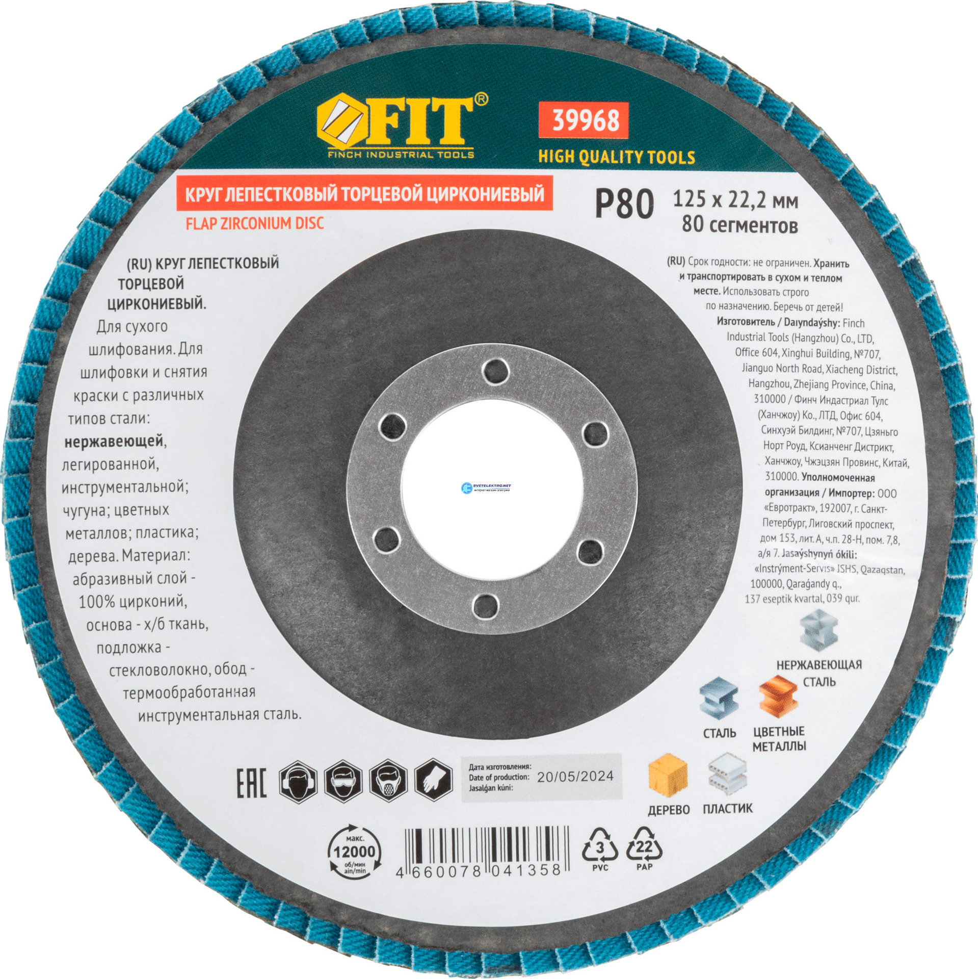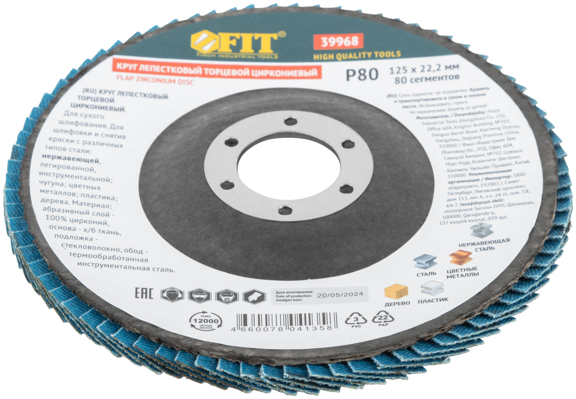 Круг лепестковый торцевой циркониевый, 125 мм Р 80, код 39968, производитель FIT