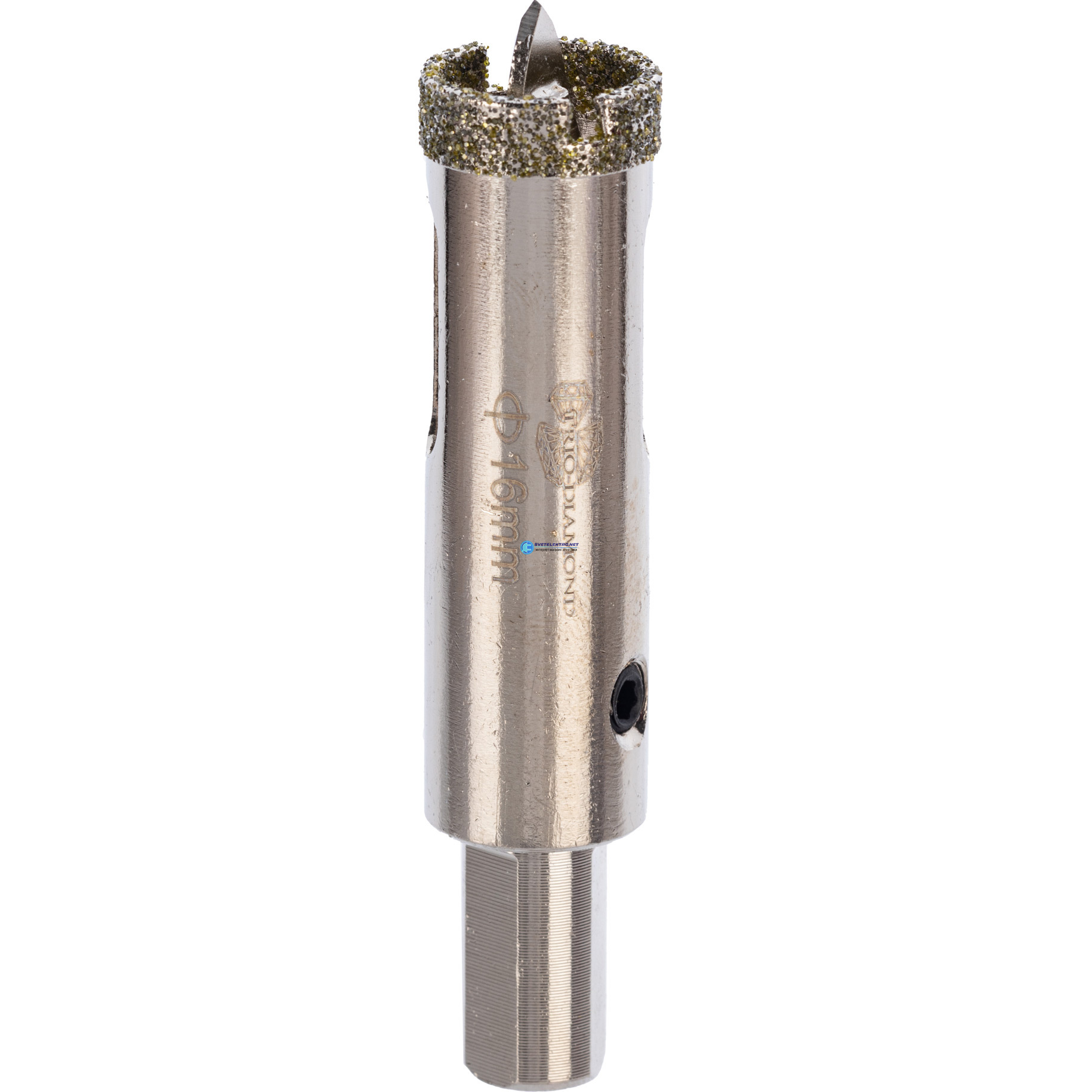Коронка алмазная с центрирующим сверлом 16 мм, по плитке и стеклу хвостовик цилиндрический с тремя гранями, мокрое сверление 400016 Trio-Diamond