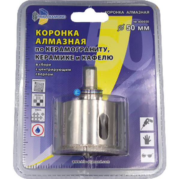 Коронка алмазная по керамике и кафелю с центрирующим сверлом 50мм, код 400050, производитель Trio-Diamond
