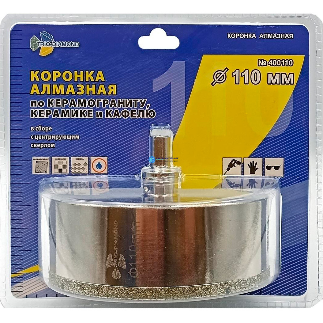 Коронка алмазная по керамике и кафелю с центрирующим сверлом 110мм, код 400110, производитель Trio-Diamond