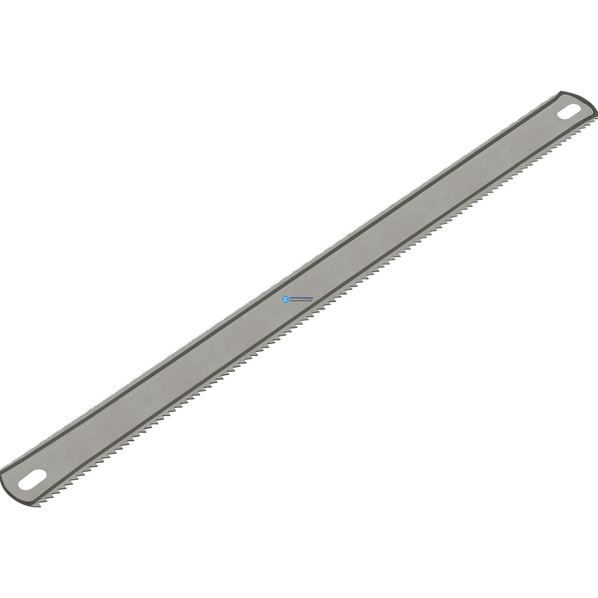 | Преимущества: | Обладает широким спектром применения за счет двух рабочих сторон с разным шагом зубьев|Волнообразная разводка предотвращает заклинивание полотна|Зубья с дополнительной термообработкой обладают высокой стойкостью к разрушению и длительным сроком службы|Гибкость полотна позволяет резать заготовки под углом при сильном натяжении|Покраска полотен предотвращает коррозию: |