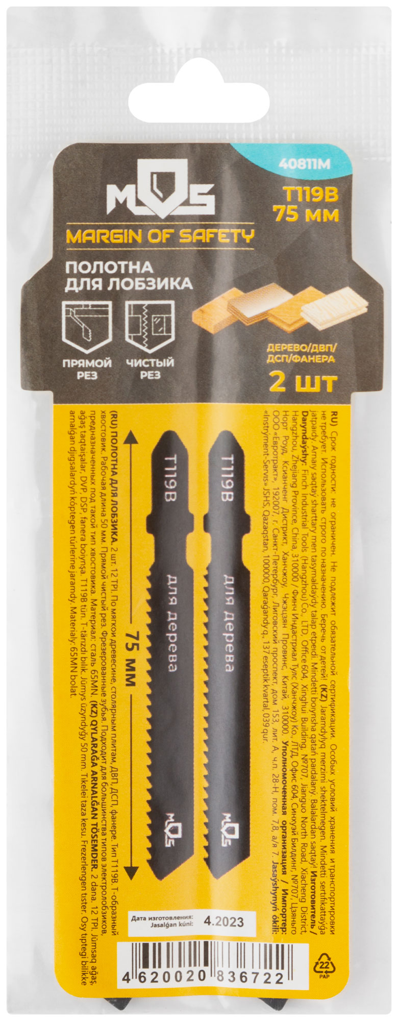 Полотна для лобзика, Т119В, по дереву, HCS, 75 мм, 2 шт., код 40811М, производитель MOS