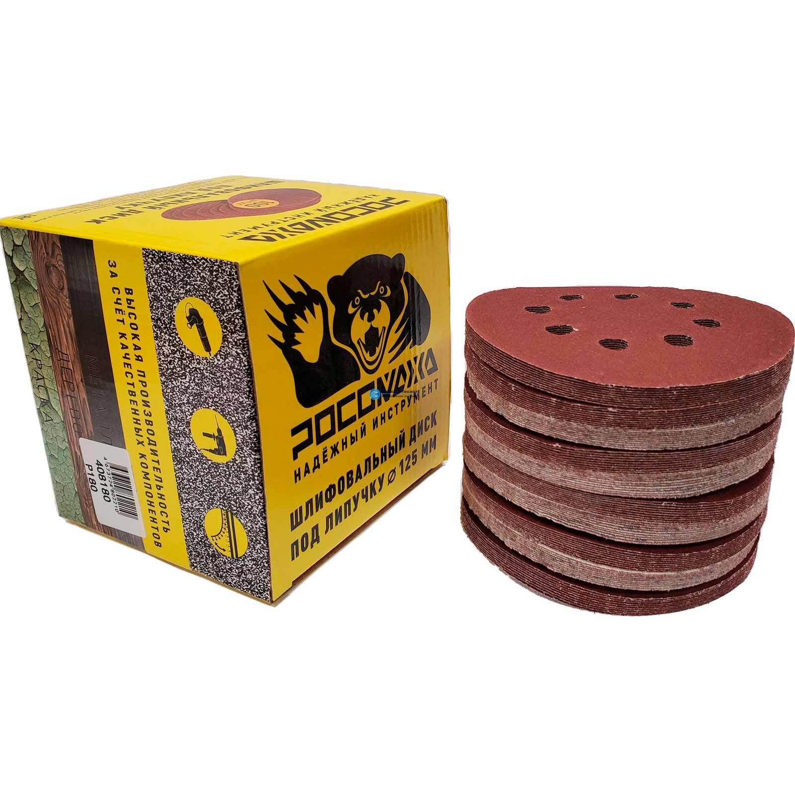 Круг шлифовальный, перфорированный 8 отверстий под липучку 125 мм зерно 180 100 шт уп. 408180 Росомаха